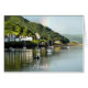 After a day of rain, the sun finally comes out and a rainbow appears in the sky, in this beautiful landscape from Aberdyfi harbour in Wales, with boats in the water and some of the village houses.