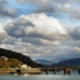 A view from Barmouth harbour of the mountains, estuary and railway bridge. Wales UK.