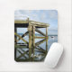 A photographic design of Aberdyfi harbour, the jetty, boats and sea.
