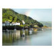 After a day of rain, the sun finally comes out and a rainbow appears in the sky, in this beautiful landscape from Aberdyfi harbour in Wales, with boats in the water and some of the village houses.