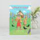 Celebrate your little Viking girl's birthday with this colourful invitation! It features a Viking girl holding a wooden longbow and arrow. She's practicing arch and arrow in the company of crows. Vikings used arches and arrows to hunt animals for food and also in battle. Behind her, there are several targets and a wooden house with a thatched roof. It's decorated with dragon heads. This Girl Birthday Party invitation is easily customised for your event by adding your details. In the background, there's a Scandinavian landscape and a Viking house. In the front, there's a sign that reads PARTY, the girl's wolf pet, and yellow balloons. It's ideal for a Viking-themed birthday party!