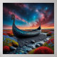 Viking Longship on a Vibrant Landscape Poster