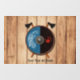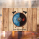 Rauð hönd ok örn. A Viking shield and crossed battle axes superimposed on a wooden plank wall background image. The shield is black on the left side with a red right hand print. The other side of the shield is blue with a white eagle in Celtic-Norse style. Customise by adding your own text.