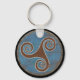 A keychain featuring the classic Celtic Triskele design over beautifully weathered wooden Viking shield background.
