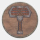 A hammer illustrated over beautifully weathered wooden Viking Shield.