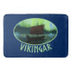 A slightly stylised image of a Viking longship sailing at night under the Northern Lights there a couple of icebergs; most of the crew is asleep. Text reading "VIKINGAR" (Vikings) also appears.