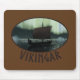 A slightly stylised image of a Viking longship sailing at night under the Northern Lights there a couple of icebergs; most of the crew is asleep. Text reading "VIKINGAR" (Vikings) also appears. This is a faded, or vintage version of the brighter original image which is also available.