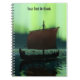 A slightly stylised image of a viking longship sailing at night under the Northern Lights there a couple of icebergs; most of the crew is asleep. Add your own text.