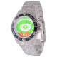 Has heft and feel of expensive stainless steel quartz watches. Good band with safety catch. I removed links, which is easy because engraved arrows show direction to push the linking pins. As always by this seller, the image (a railroad logo) is a perfect reproduction of my emailed image, and is precisely spaced and aligned.