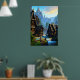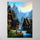 Viking town waterfall and mountain | AI Art Poster