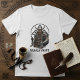 Underneath, the bold text "VALHALLA AWAITS" serves as a rallying cry for anyone who admires Viking history, mythology, or the warrior spirit. Perfect for fans of Norse lore, history buffs, or as a unique gift for those who live by the code of the ancients. This comfortable, high-quality tee is designed for daily wear or your next gathering in the great hall.