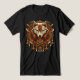 Channel the fierce spirit of the North with this powerful Viking wolf emblem inspired by Norse mythology. This striking design features a majestic wolf with glowing amber eyes surrounded by intricate Nordic symbolism, Viking axes, and mythological ornaments. The symmetrical composition and bold red and gold details create a dramatic Nordic warrior aesthetic.