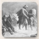 Vikings with shields and weapons fighting their way through blowing snow and storm. Vintage fine art from Norwegian artist. Images in public domain