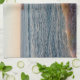 The villa, in the original photograph by ZoeSPEAK on this Kitchen Towel, is the Villa Belza, in Biarritz, France. It sits on the rocks at the edge of the Atlantic ocean, with the sound and view of the waves on the Côte des Basques. The late afternoon sunlight adds a warm glow to the scene, a lovely scene for anyone who loves the colours of sunset over the ocean. The artwork has an overall canvas texture.