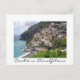 Postcard of the small colourful village of Positano, built on a hill-top overlooking the Mediterranean Sea at the Amalfi coast, close to Capri, in Italy with a white border and the text: 'Costiera Amalfitano'.