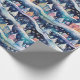 A soft and colourful print to enchant the children- a pastel coloured quaint village in a midnight blue snowstorm. Seamless image.