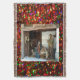 Behold the Village Nativity! At its heart, the scene unfolds with baby Jesus, Mary, and Joseph, encircled by a kaleidoscope of stars. A villager is depicted opening the door, coming to pay homage to Jesus and the Holy Family, while various elements are set against a vibrant coloured backdrop.