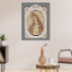 Madonna in Prayer fine art print, Our Lady of the Gate of Dawn (Lithuanian: Aušros Vartų Dievo Motina, Polish: Matka Boska Ostrobramska, Belarusian: Маці Божая Вастрабрамская, Russian: Остробрамская икона Божией Матери) is the prominent Christian icon of the Blessed Virgin Mary venerated by the faithful in the Chapel of the Gate of Dawn in Vilnius, Lithuania. The painting was historically displayed above the Vilnius city gate; city gates of the time often contained religious artefacts intended to ward off attacks and bless passing travelers. The painting is in the Northern Renaissance style and was completed most likely around 1630. The Virgin Mary is depicted without the infant Jesus. The artwork soon became known as miraculous and inspired a following. A dedicated chapel was built in 1671 by the Discalced Carmelites. At the same time, possibly borrowing from the Eastern Orthodox tradition, the painting was covered in an expensive and elaborate silver and gold riza, leaving only the face and hands visible.