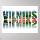 Vilnius text composed of view from above of Vilnius old town, Lithuania. View of St. Stanislaus Cathedral on Cathedral Square, Gediminas castle on the hill, red rooftops