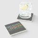 The coasters are gorgeous, a quality feel and heavy weight. They look like a precious archeological find. A rustic stone juxtaposed with a modern floral black and white print. I like the way the print goes slightly imperfect on the cut stone edges giving them a kind-of natural beauty.