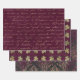 Deep burgundy - wine red and shimmering gold pattern wrapping paper in three different wine-themed styles including distressed grunge damask, a grapevine, and old fashioned French handwriting.