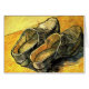 A Pair of Leather Clogs (1888) by Vincent van Gogh is a vintage Post Impressionism fine art still life painting. A pair of peasant shoes, old leather clogs on a bold yellow background.