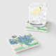 The coasters are gorgeous, a quality feel and heavy weight. They look like a precious archeological find. A rustic stone juxtaposed with a modern floral black and white print. I like the way the print goes slightly imperfect on the cut stone edges giving them a kind-of natural beauty.