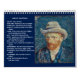 This calendar displays 14 paintings by the great Dutch artist Vincent van Gogh produced between 1886 and 1890. It lists the paintings and the date produced on the back cover for easy reference. It's a perfect gift for any art lover. Before purchasing, please be sure to personalise the date, and scroll to select all your preferred options (e.g., Holidays, Size, Binding colour, etc.).