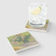 The coasters are gorgeous, a quality feel and heavy weight. They look like a precious archeological find. A rustic stone juxtaposed with a modern floral black and white print. I like the way the print goes slightly imperfect on the cut stone edges giving them a kind-of natural beauty.
