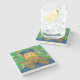 The coasters are gorgeous, a quality feel and heavy weight. They look like a precious archeological find. A rustic stone juxtaposed with a modern floral black and white print. I like the way the print goes slightly imperfect on the cut stone edges giving them a kind-of natural beauty.