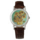 I like the illustrative watch with the lady on it. It is a great reminder that I am blessed and it has a very sturdy leather band. The colors are true and vibrant. Love the color of the Leather also. Very nice.