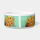Artistic beautiful floral vintage fine art painting featuring twelve sunflowers in a vase against a turquoise background.