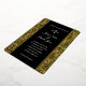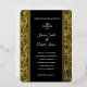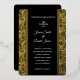 This wedding invitation is shown in a classic layout on a lovely gold foil floral background.