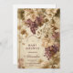 This baby shower design features an elegant vineyard-inspired frame with cascading grape clusters, leafy vines, and a warm parchment background, illustrated in a classic vintage botanical style. Rich plum tones and soft greens create a refined, old-world aesthetic with a subtle European countryside feel.