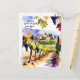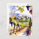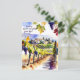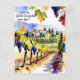 Vineyard watercolor thinking of you postcard. Watercolor vineyard Tuscan landscape houses with vines and grapes