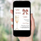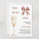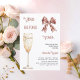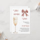 A modern, stylish and glamourous invitation for a Vino before Vows Bridal Shower. A white background with a pink bow, glass with bubbles and pearls. The name is written with a modern hand lettered style script. Personalise and add your party details.