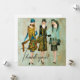 Vintage 1930's Fashion Illustration over gold and green old paper
