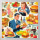 Vintage 1950s Food Comics Illustration Poster