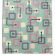 A mid century modern-inspired art pattern that has lines, outlined shapes and squares in beautiful Spring colours of teal, yellow, pink and purple.