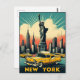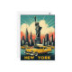 • This vibrant, retro-style postcard celebrates the iconic New York City, featuring the Statue of Liberty, the towering Empire State Building, and classic yellow taxis cruising along the waterfront. The artwork uses bold, warm colors to highlight the city's dynamic skyline, with rays of light streaming through the sky, adding an energetic and nostalgic vibe. Perfect for lovers of vintage aesthetics, New York history, and retro decor, this poster captures the timeless allure of the Big Apple.