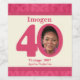 Pink and cream ribbon and fleur-de-lis patterned girls 40th birthday wine, spirits or drinks labels. Reads Bethany 40 Vintage 1987 aged to perfection, customise with your own birthday girls name vintage birth year and a photo of your choice, in the 0 of 40. A great way to customise your gift of wine. Matching wine box also available. © Designed by Sarah Trett. www.sarahtrett.com for www.mylittleeden.com