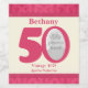 Pink and cream ribbon and fleur-de-lis patterned girls 50th birthday wine, spirits or drinks labels. Reads Bethany 50 Vintage 1978 aged to perfection, customise with your own birthday girls name vintage birth year and a photos of your choice in the 0 of 50. A great way to customise your gift of wine. Matching wine box also available. © Designed by Sarah Trett. www.sarahtrett.com for www.mylittleeden.com