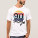 A milestone birthday design with a retro vintage styled colourful sunset that has a faux distressed effect.
