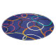 Vibrant circles and abstract bands dance in a vintage pattern.