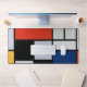 Composition with Large Red Plane, Yellow, Black, Grey, and Blue (1921) by Piet Mondrian is a vintage abstract fine art composition that is asymmetrical with one large dominant block of colour, red, which is balanced by the distribution of smaller blocks of yellow, bluish grey, and white. The composition has thick, black horizontal and vertical lines that delineated the outlines of the various rectangles of colour.