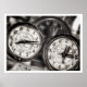 Black and white image of vintage alarm clocks by photographer Joanne Mariol.