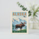 Embrace the untamed beauty of the Last Frontier with this stunning Alaska postcard, designed in a captivating retro travel poster style! This vibrant vintage illustration perfectly captures the majestic wilderness of Alaska, USA, featuring a grand moose by a serene lake, towering snow-capped mountains, and an eagle soaring high above. The sentiment 'Wild & Free' boldly proclaims the spirit of this incredible state.