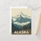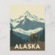 This graphic illustration embodies a vector art style with its simplicity and no intricate details, reminiscent of classic vintage travel posters. It’s the perfect souvenir from an Alaskan adventure, an ideal gift for wildlife enthusiasts, or a stunning piece of retro art.