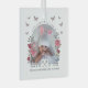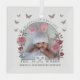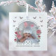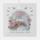 Beautifully designed vintage Alice in Wonderland-themed birth announcement glass ornament. We've meticulously restored the iconic Alice in Wonderland vintage white rabbit & Alice illustration by hand sketching and bringing it to life with beautiful watercolor undertones. Features our hand-drawn watercolor and sketch-style rose blossom photo frame arrangement for you to add your own image inside the arch photo shape. Customize with the baby's name, date of birth, and birth stats. Designed by Moodthology Papery