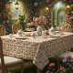 Add a touch of classic storybook magic to your dining table with this vintage Alice in Wonderland tablecloth. This seamless repeating design features Alice in her Victorian blue dress, the Mad Hatter, the White Rabbit, and the Queen of Hearts, along with whimsical red hearts, ornate playing cards, and a flamingo croquet scene. The warm beige background gives the pattern an elegant, antique feel that complements any event décor. Perfect for tea parties, birthdays, themed weddings, baby showers, or simply bringing the timeless charm of Wonderland to everyday meals.